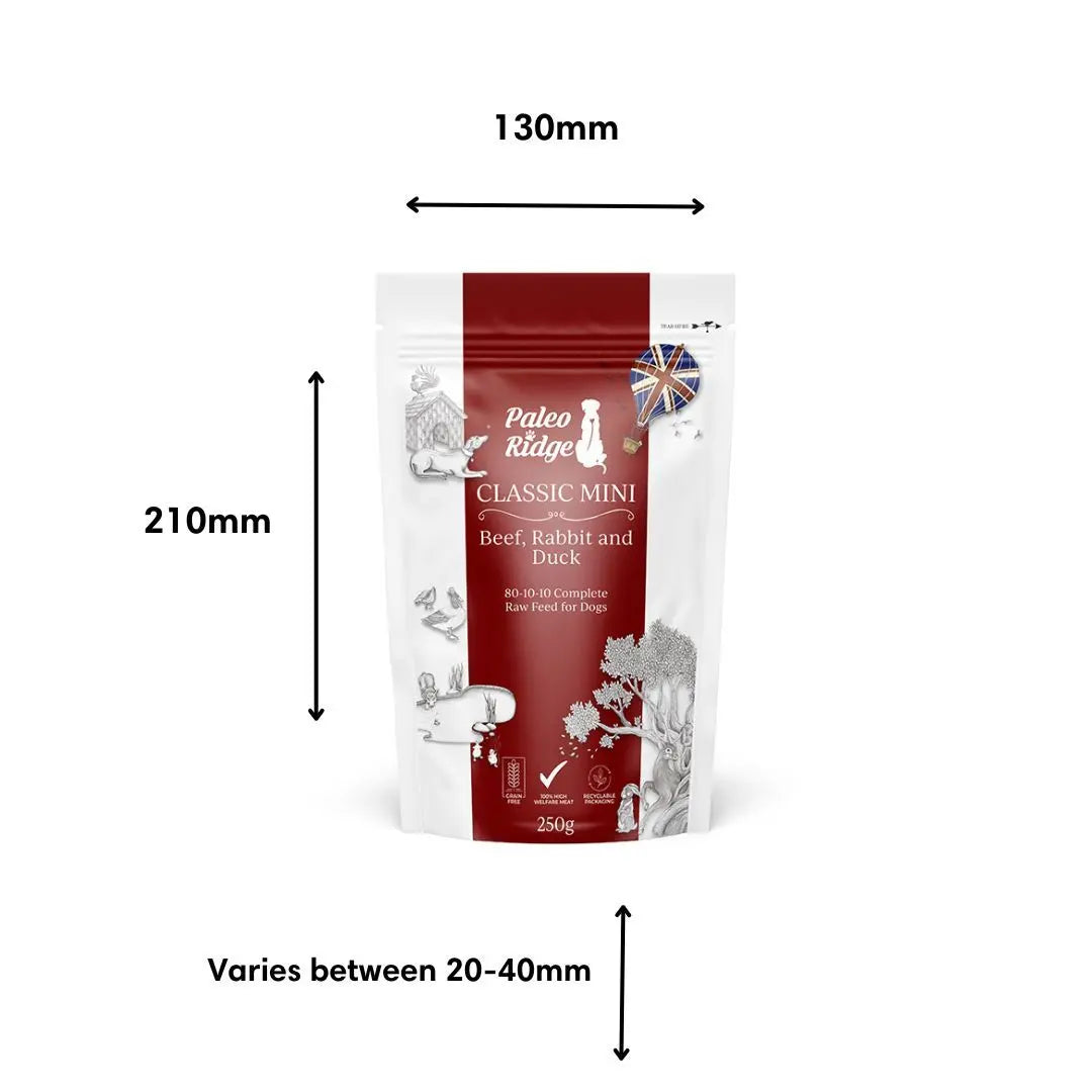 Our packaging is rigorously tested to withstand freezing temperatures, courier handling, and the demands of raw dog food storage. Leak-proof and freezer-safe, it ensures the highest standards of hygiene and convenience while maintaining our commitment to sustainability.